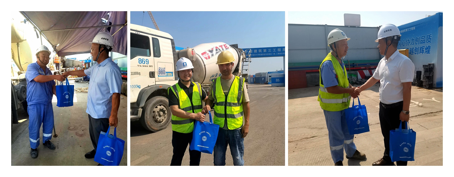 慰問小組深入項目現(xiàn)場,將精心準備的“清涼大禮包”送到一線員工手中。禮包內(nèi)含解暑飲品、茶葉、毛巾等實用物資,精準滿足高溫作業(yè)需求。一份份清涼,一聲聲問候,讓堅守崗位的員工在炎炎夏日感受到公司和工會的濃濃關(guān)愛。慰問過程中,慰問組成員與員工親切交流,叮囑大家注意防暑降溫,科學安排作業(yè)時間,確保安全生產(chǎn)。