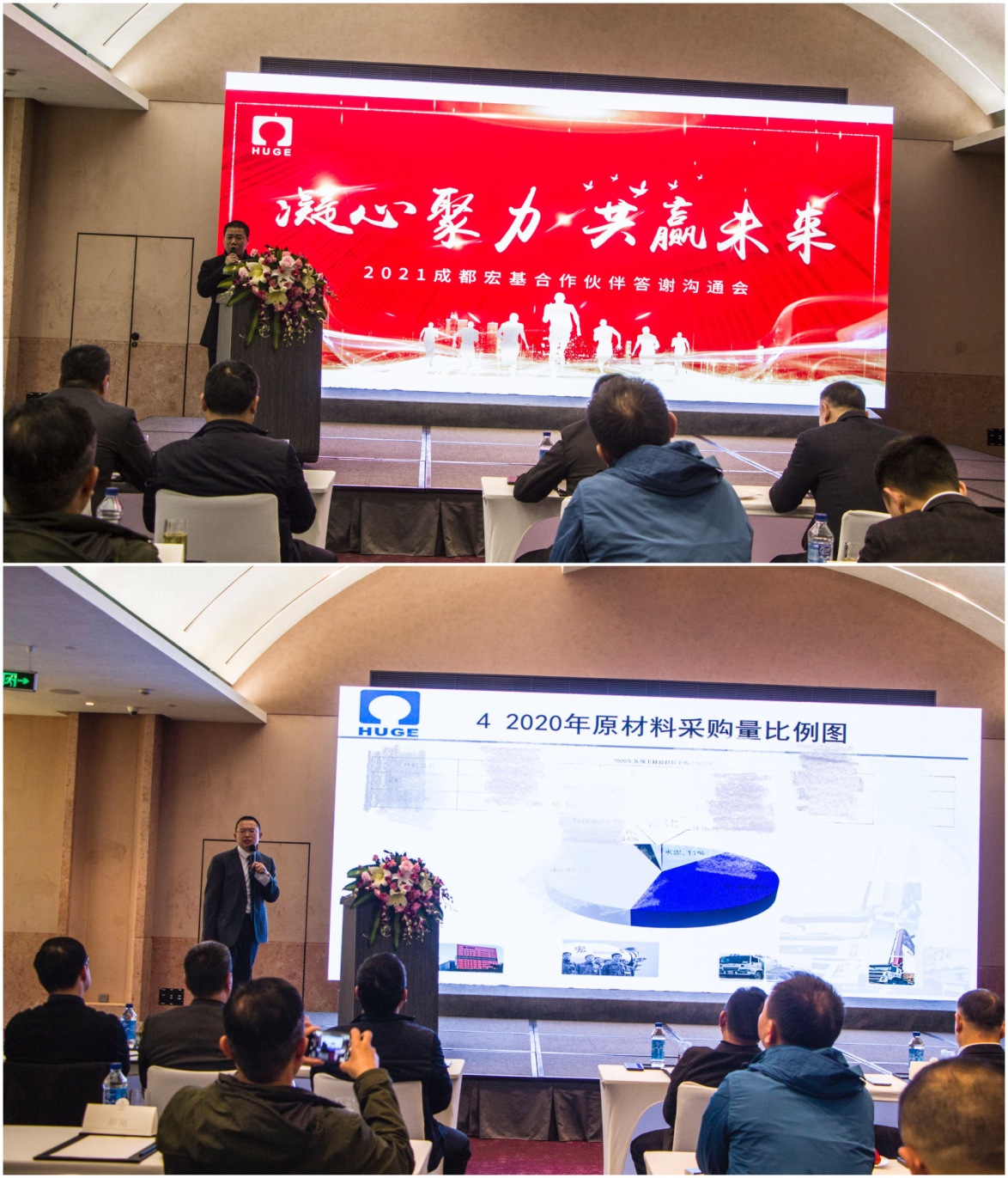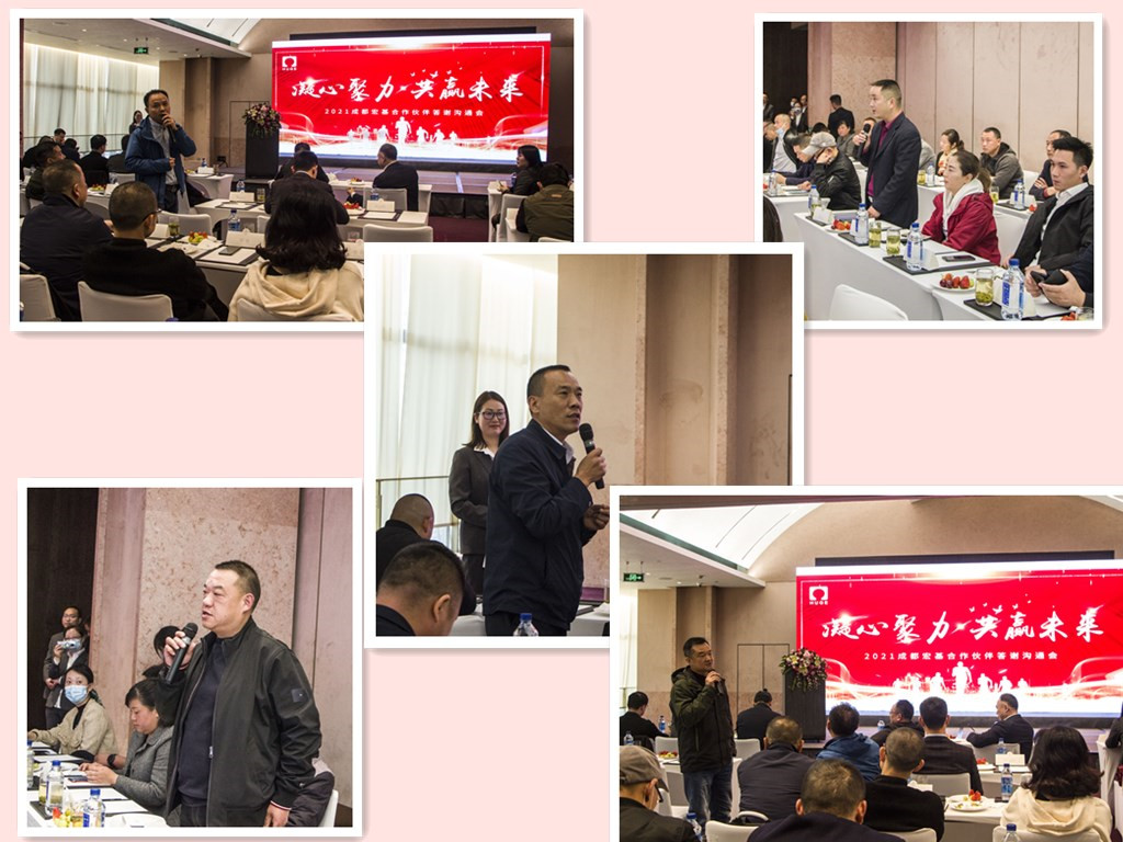 2021年3月25日,成都宏基合作伙伴答謝溝通會(huì)在凱賓斯基酒店舉行。公司董事長兼總裁吳逸云先生攜高管團(tuán)隊(duì)、物資、生產(chǎn)系統(tǒng)同事出席,近七十位供應(yīng)、服務(wù)合作伙伴應(yīng)邀赴會(huì)。