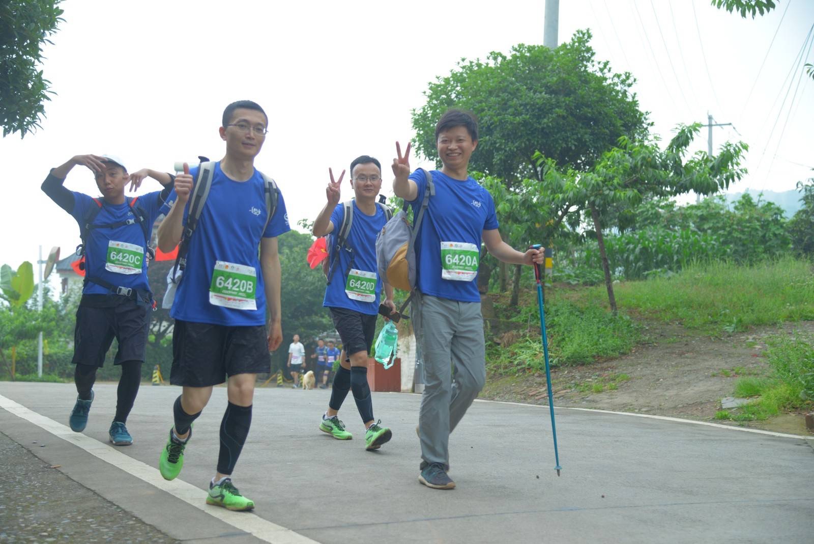 宏基建材-萬水千山只等閑之戰(zhàn)隊(duì)(王洵):抱著挑戰(zhàn)自我的態(tài)度報(bào)名,雖然平時(shí)常常健身,但此次長距離的徒步鮮有參加,所以在拉練的時(shí)候腳底被磨破了皮,隨之而來的是皮膚被感染。此時(shí)距離正式比賽只有短短幾天,心中兩個(gè)“小”人兒不時(shí)在戰(zhàn)斗:是繼續(xù)參賽還是現(xiàn)在退出?最終,堅(jiān)強(qiáng)的“小”人兒勝利了。比賽當(dāng)天,天公作美,涼爽舒適,幾千余人齊聚龍泉驛,參賽隊(duì)伍氣勢(shì)磅礴,此時(shí)更堅(jiān)定了我們努力完賽的信心。CP2紅旗村到CP3桃源村黨群服務(wù)中心的路程較為艱難,此時(shí)賽程已完成29KM,猜想接下來的路程較為平坦,其實(shí)不然,等待我們的是更為艱難的行程。由于前面的艱難歷程已經(jīng)將我們的體力耗費(fèi)所剩無幾,下行陡坡的路程對(duì)于猶如雙腿灌鉛的我們變得更為困難。幾次在內(nèi)心閃出撤退的念想,但俗話常說:身子都進(jìn)去了,還擔(dān)心頭嗎?最終,大家一鼓作氣,在規(guī)定的時(shí)間內(nèi)完成了比賽。