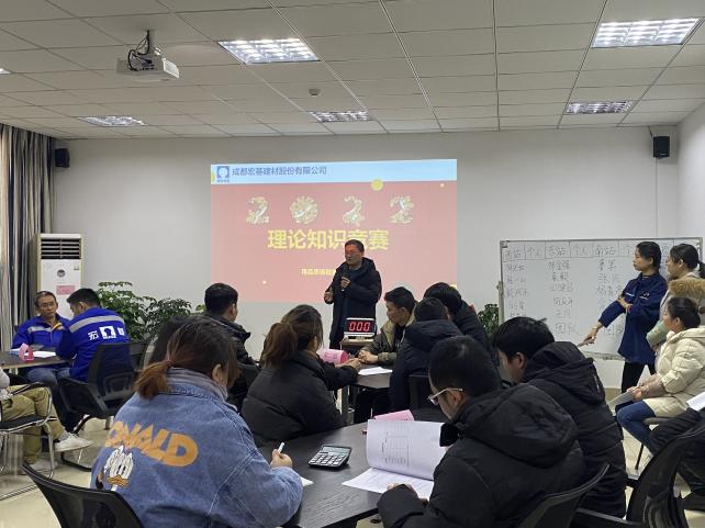 2月14日,成都宏基建材股份有限公司首屆知識競賽、配合比大賽圓滿結(jié)束。本次競賽以“以賽促學、以學促用”為主題,以提高技能水平為目標,這不僅是一次大比武大練兵,更是對試驗隊伍技能水平和綜合素質(zhì)的大檢閱。本次競賽在蓉西分公司舉行,共分為理論競賽和配合比大賽兩個環(huán)節(jié)。旨在將專業(yè)理論知識與生產(chǎn)實踐相結(jié)合,充分考察各參賽隊員對配合比設(shè)計合理性、專業(yè)技能水平、團隊協(xié)作等方面的綜合能力。進入競賽共有4組隊伍,每組隊伍由5-6人組成。蒞臨本次競賽現(xiàn)場的領(lǐng)導:副總裁胡總、助理總裁曹總、副總工程師韓總,以及分公司負責人等。