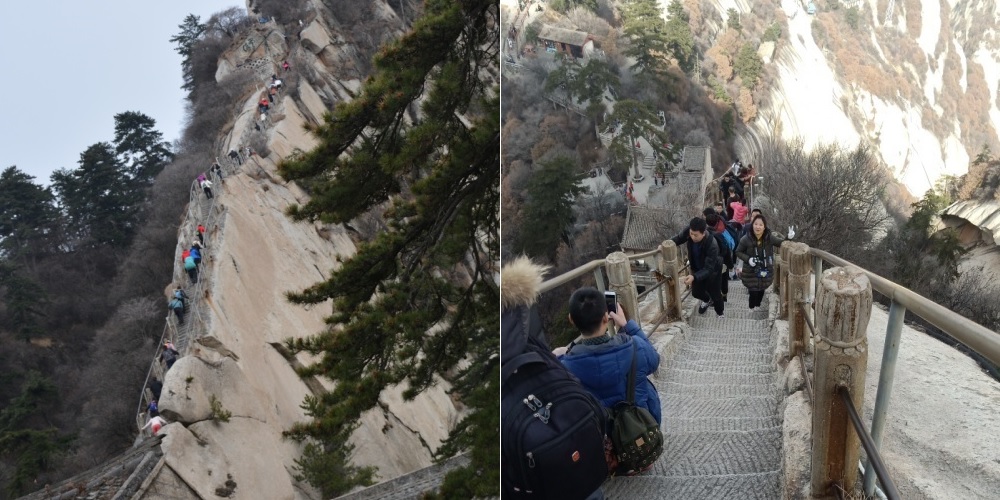 第三天早晨7:30所有成員準(zhǔn)時(shí)來到乘車地點(diǎn),準(zhǔn)備趕往本次拓展訓(xùn)練主戰(zhàn)場(chǎng)—華山。經(jīng)過兩個(gè)多小時(shí)的車程,我們來到了華山腳下開始了登華山迎新年的小組比賽,每個(gè)小組的組員相互幫助,相互鼓勵(lì),很多畫面讓我非常的感動(dòng):有的幫助組員背行李、有的扶組員、有的男組員負(fù)責(zé)女組員的安全。即使有的組員在自身身體極度疲憊的情況下,仍在堅(jiān)持努力向山頂攀登,或手抓鐵鏈,或手腳并用,這樣的精神鼓舞著全員,在蒼龍嶺、金鎖關(guān)、天梯等景點(diǎn)無不看到各組員都在努力向上。